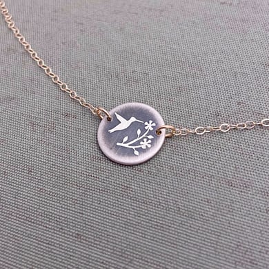 14k Gold and Sterling Silver Tiny Hummingbird Necklace