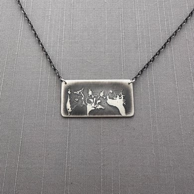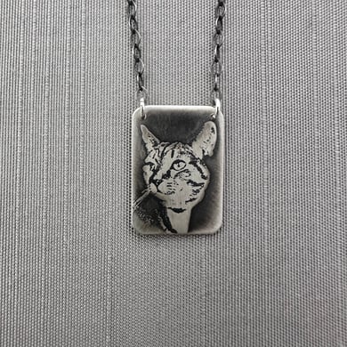 Sterling Silver and Blue Sapphire Tabby Cat Necklace
