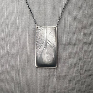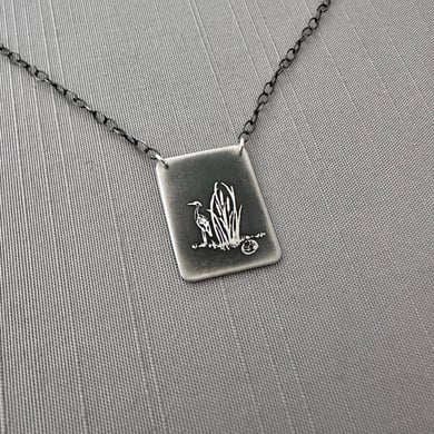 Sterling Silver Heron and Muskrat Among Cattails Rectangle Necklace