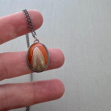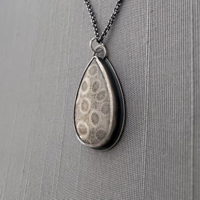 Sterling Silver and Coral Fossil Teardrop Necklace