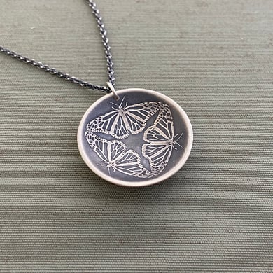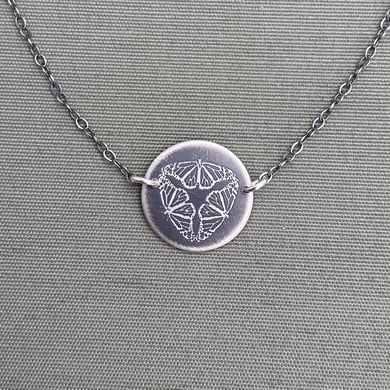 Small Sterling Silver Monarch Butterfly Mandala Necklace